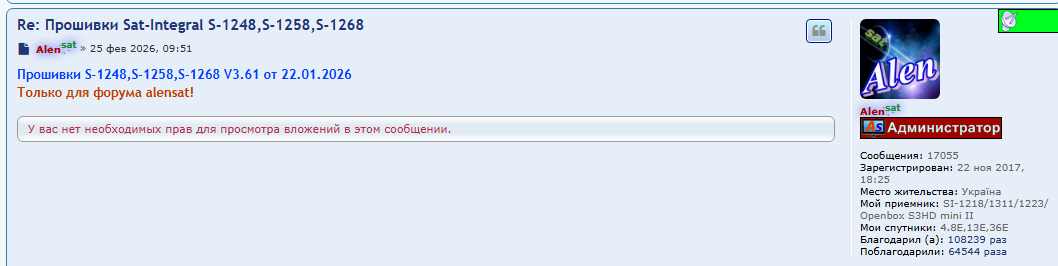 ПО Sat-Integral S-1218-28HD / S-1248-58-68HD / S-1311 HD COMBO v3.59